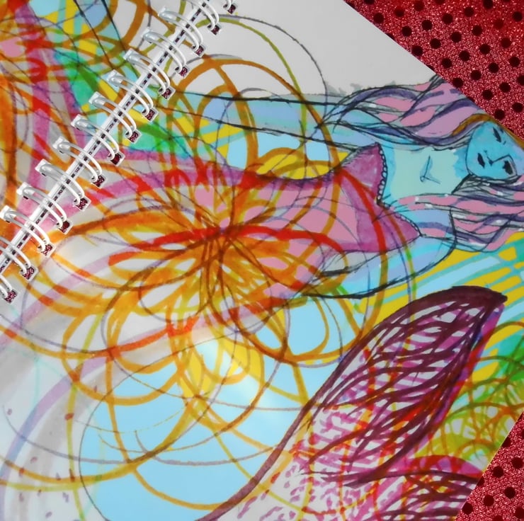 This is a beautiful, A5 notebook depicts a colourful mermaid and abstract, doodle-like designs. The notebook itself has blank pages, so can be used either as a notebook or sketchbooks - whatever you wish! This would also make a great gift for tween or teenager, to use as a diary, journal, school notebook.