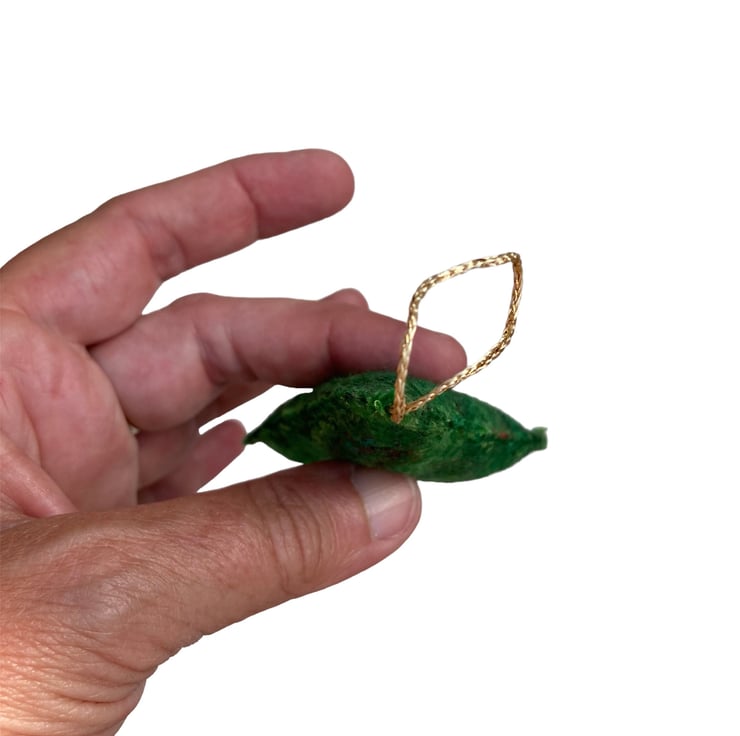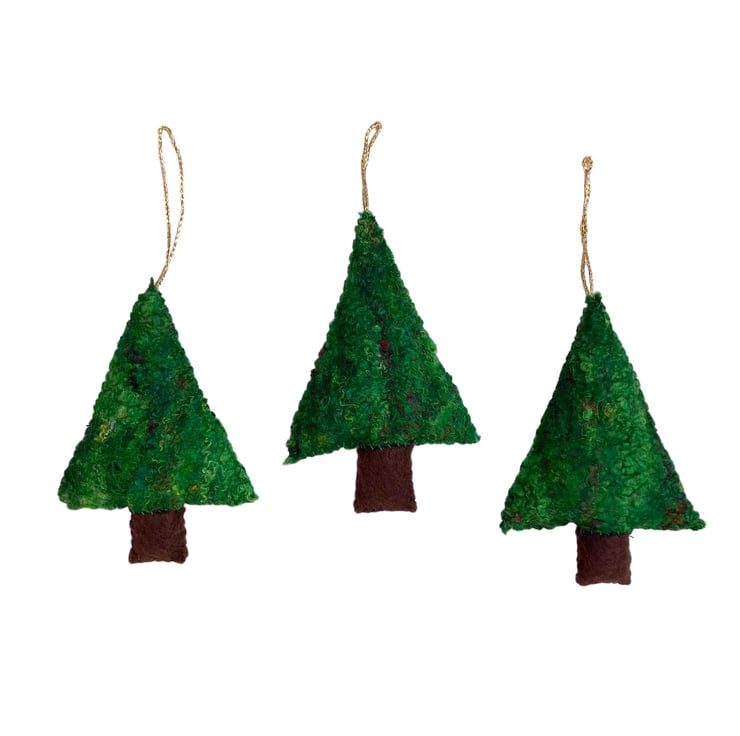 The tree decoration measures approximately 10cm tall (excluding hanging thread) x 7cm wide