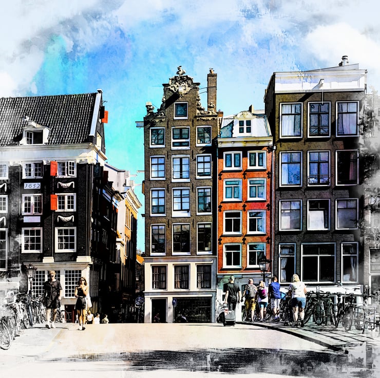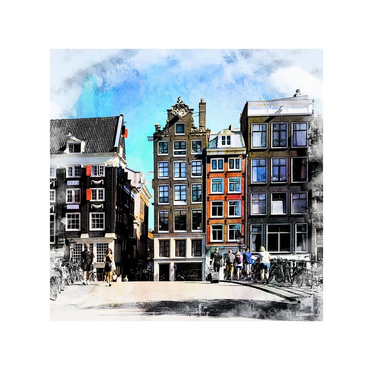 Transform any room into a picturesque scene straight out of the heart of Amsterdam, capturing the whimsical charm and architectural marvels of Amsterdam with this stunning wonky building photograph with watercolour overlay. 8 x 8inch print mounted in a 12 x 12inch matt ready to frame. Your print will be numbered up to 250. Display these fine art photographs in your living / office space. Capture the essence of Amsterdam today and embrace the wonky beauty of its remarkable buildings and canals through my captivating limited editions of 250 fine art Giclee prints ready to frame in acid free ice white mounts.
