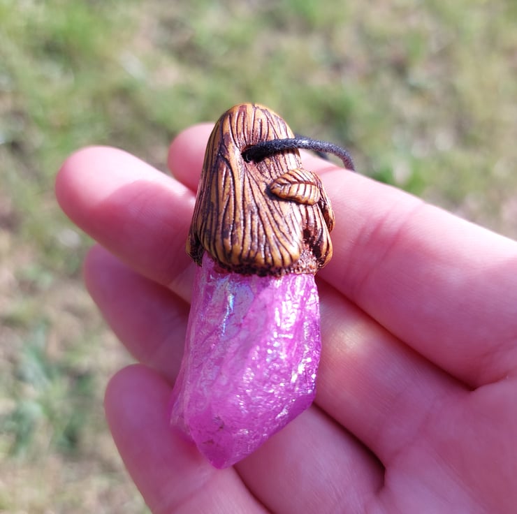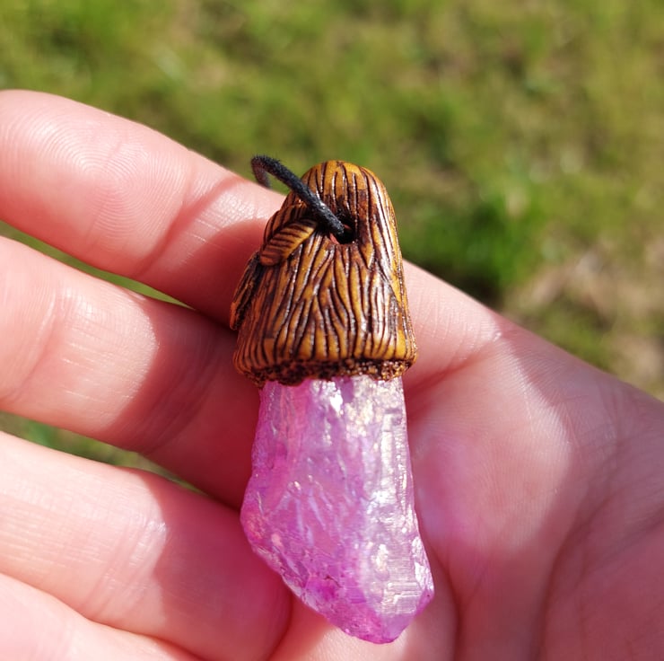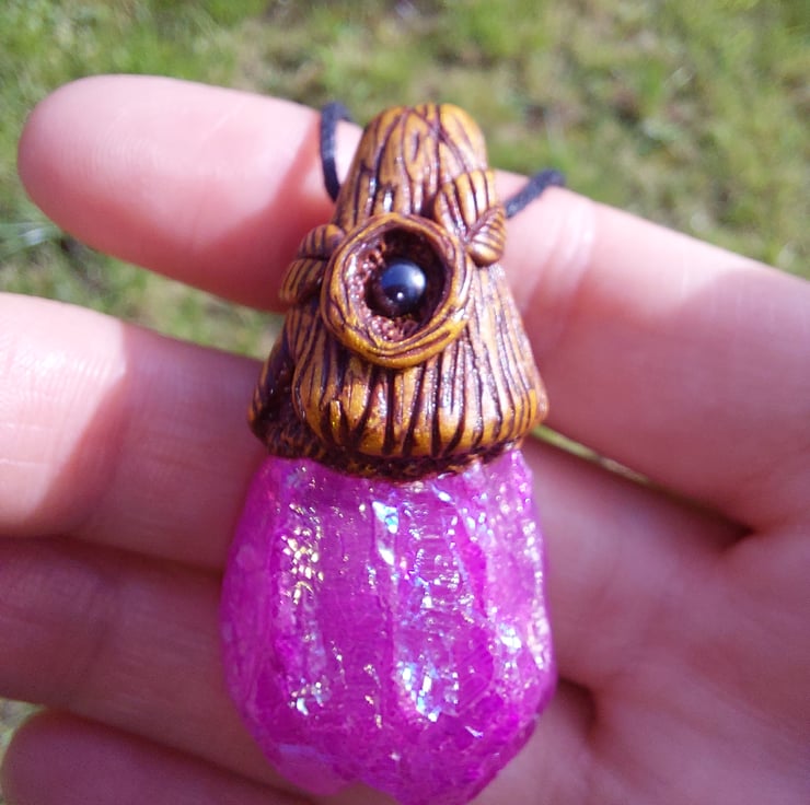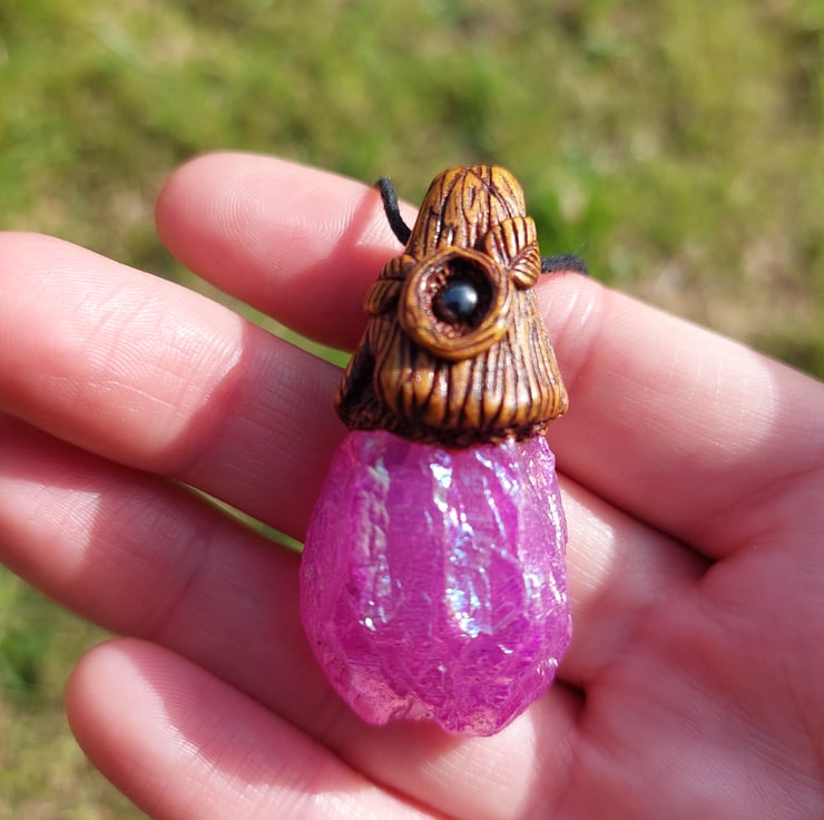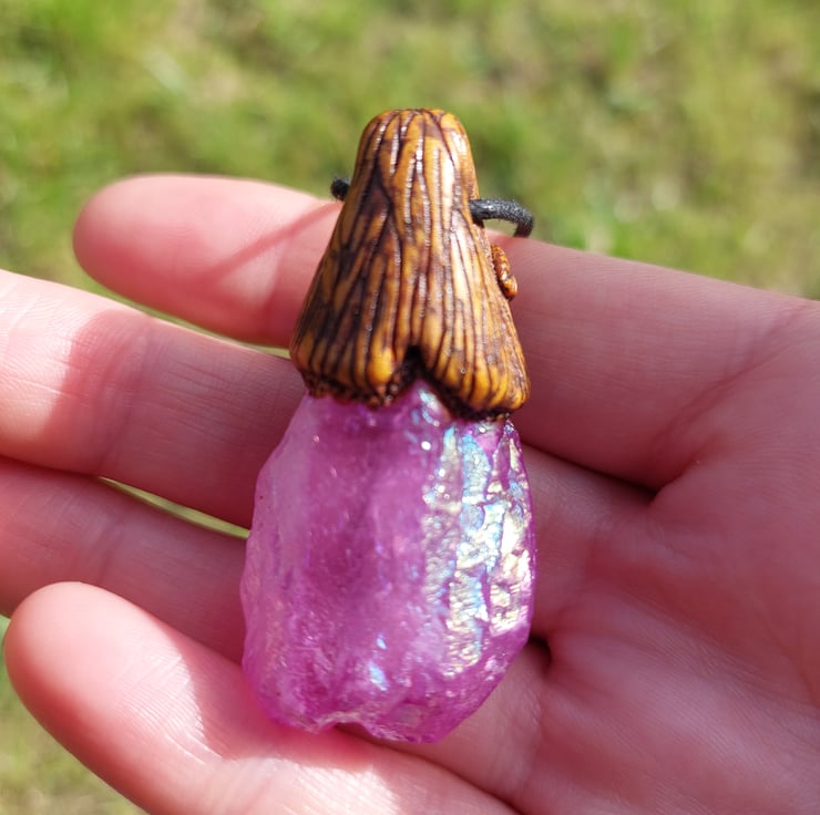 Unicorn stone (metal-plated quartz) with hematite Autumn treasure pendant.