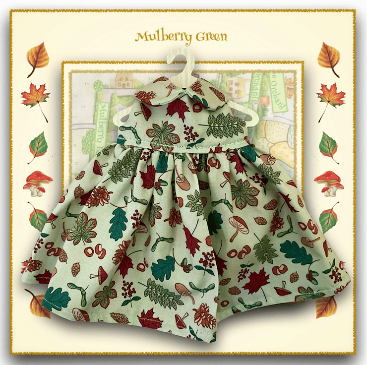 A beautiful little Liberty print dress in a new Liberty fabric - Woodland Forage, to fit the Mulberry Green dolls. The dress is handmade from best quality Liberty cotton, has a lined bodice and a Peter Pan collar and fastens at the back with a little popper. There is a matching cardigan.