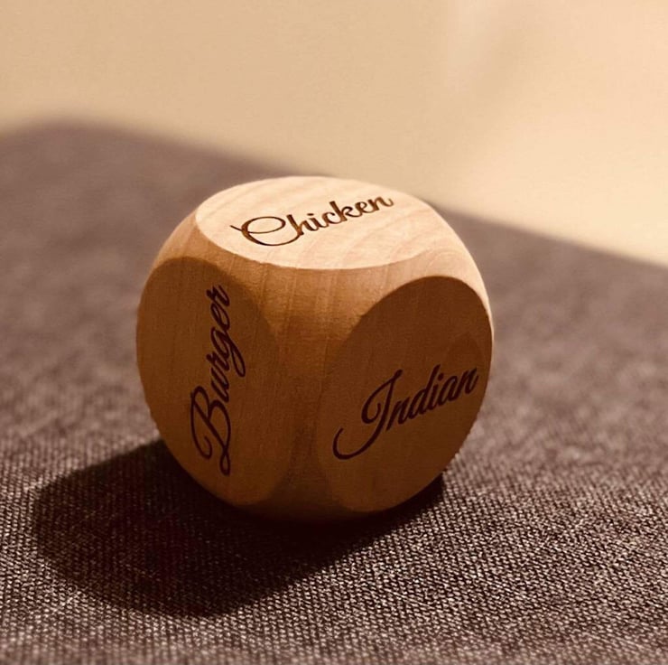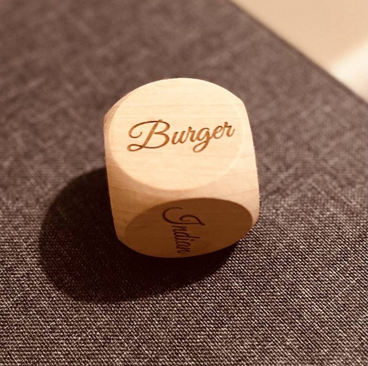 A fun personalised dice to help you decide what takeaways to order.