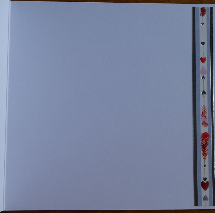 Inside the card a border of hearts and feathers has been added to match the front. The remaining space has been left blank for your own message.