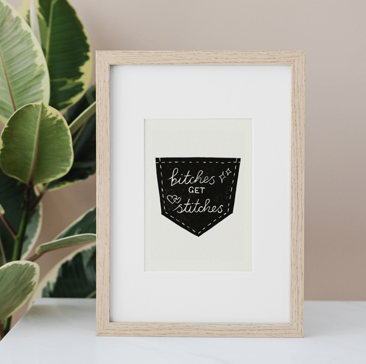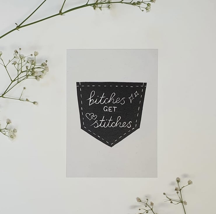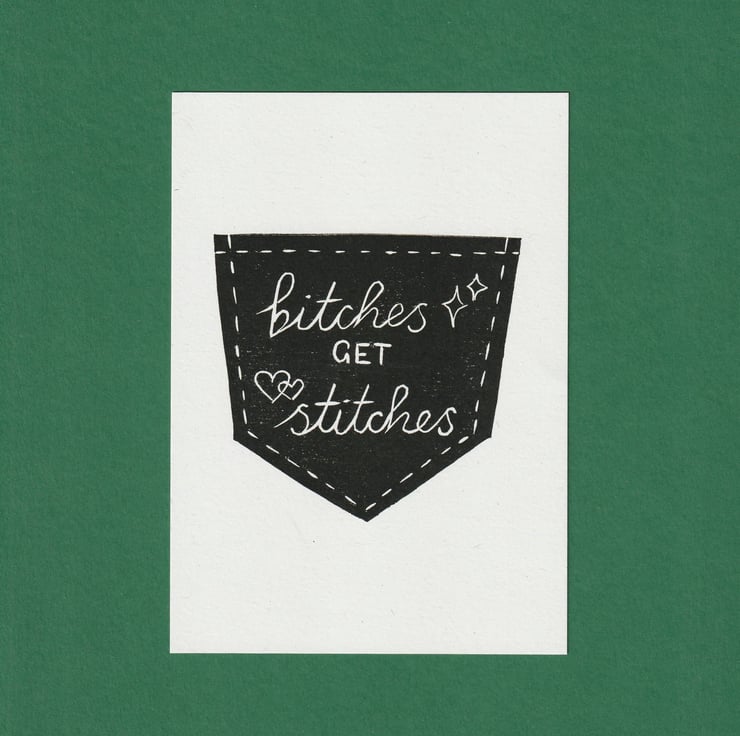 This is an A6 digital reproduction of an original lino print of mine. It is printed with black ink on 300gsm uncoated recycled paper in an off-white colour. The paper is made with 100% recycled pulp and up close you can see long recycled fibres peppered through it which gives it a lovely natural touch.