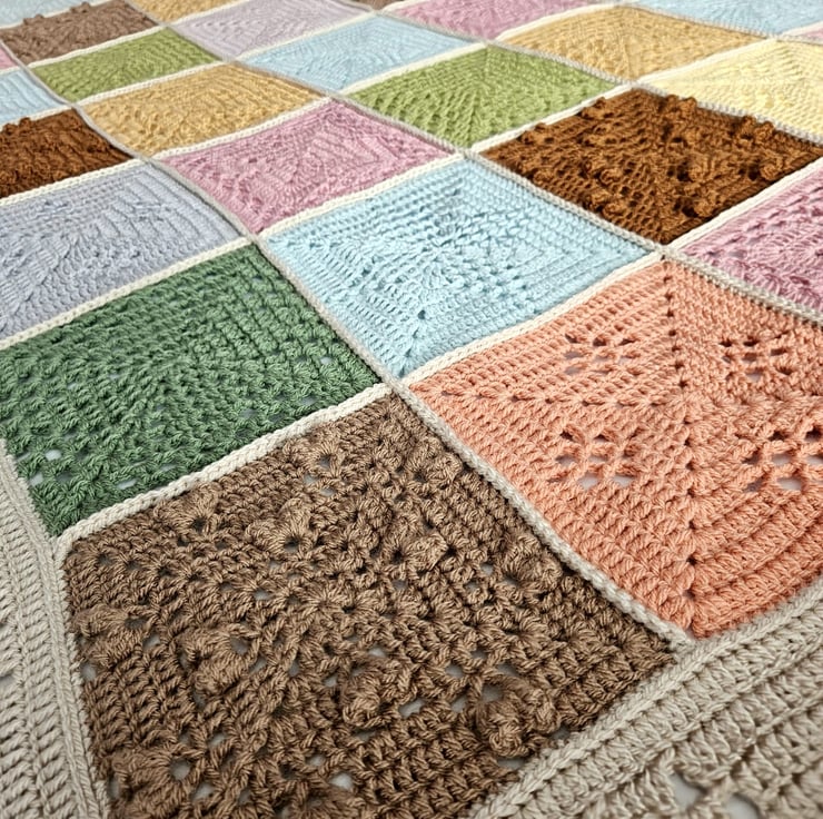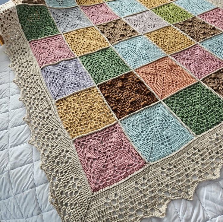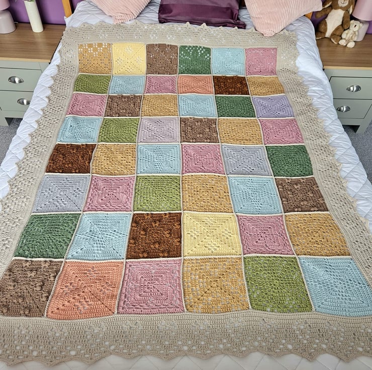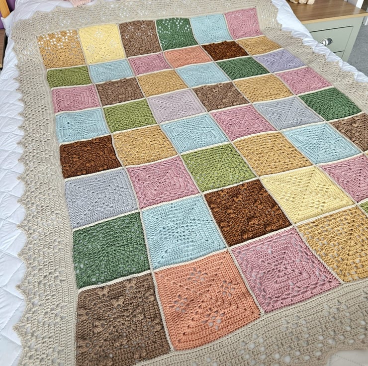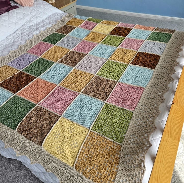This blanket has been made using 100% Acrylic yarn and is machine washable. I made this "Natures walk" blanket using the pattern designed by Sandra Paul at Cherry heart.