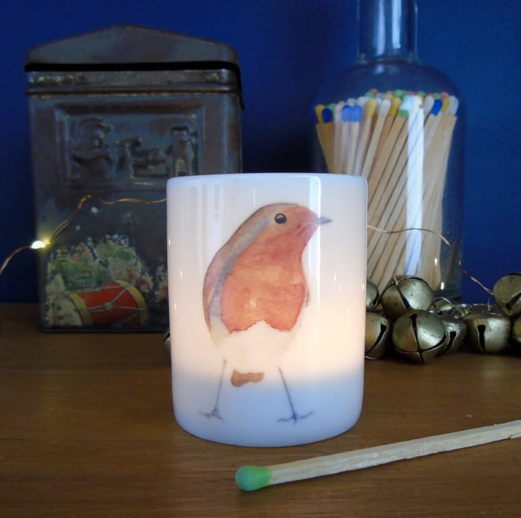 The fine bone china is slightly translucent so the warm glow of the candle flickers through the robin's redbreast, a sweet way to remember loved ones at Christmas time.