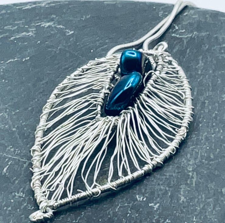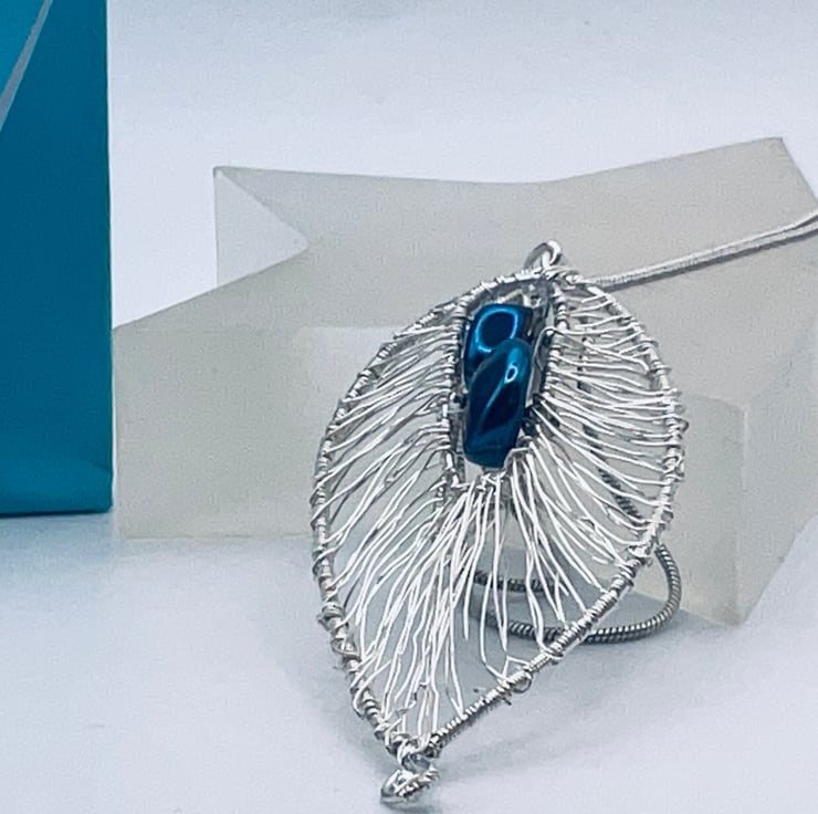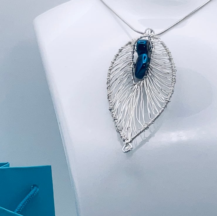 This delightful leaf is created with figure of eight or ladder stitch weaving and two blue hematite flat beads as the focus. This item is a sheer delight, so will make the perfect gift for any lady who wears blue quite naturally. It is such an attractive piece which can be worn by day or evening! So snap it up before it goes! It will not be there by Christmas!