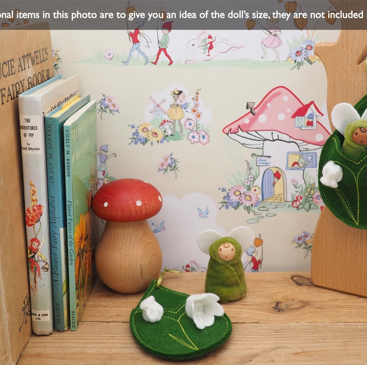 The wool felt pod is 11 cm tall, and the finger puppet is approximately 7cm tall. They are CE marked and safe from birth. Play recommendation age 2 to 100 years!