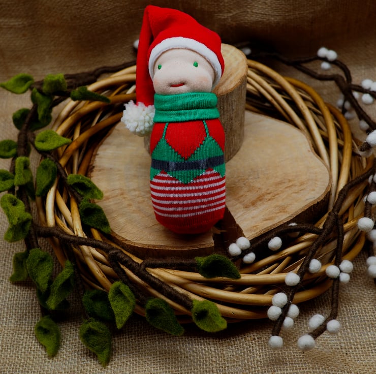 Christmas decoartions should last for a lifetime and use earth friendly materials. This little elf is made from pure renewable British sheepswool and deadstock cotton socks, made to an heirloom quaility and will last and last!