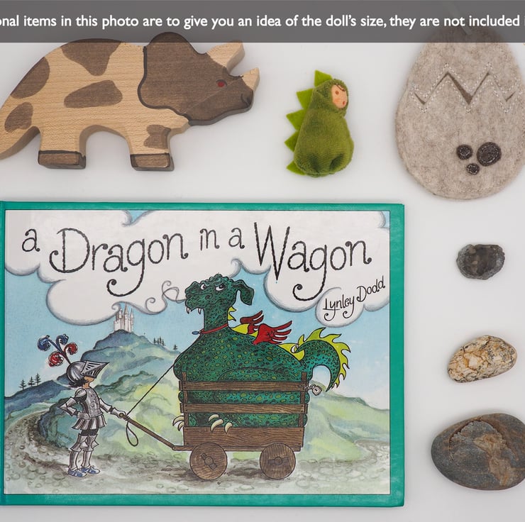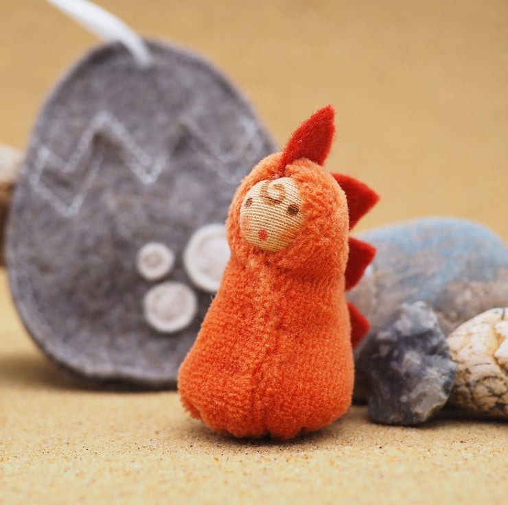 Putting the tiny dino doll in the felt egg and closing it up delighted her. I added soft wool felt spikes along the back of the doll and cut the egg open with a strong crack to add excitement!