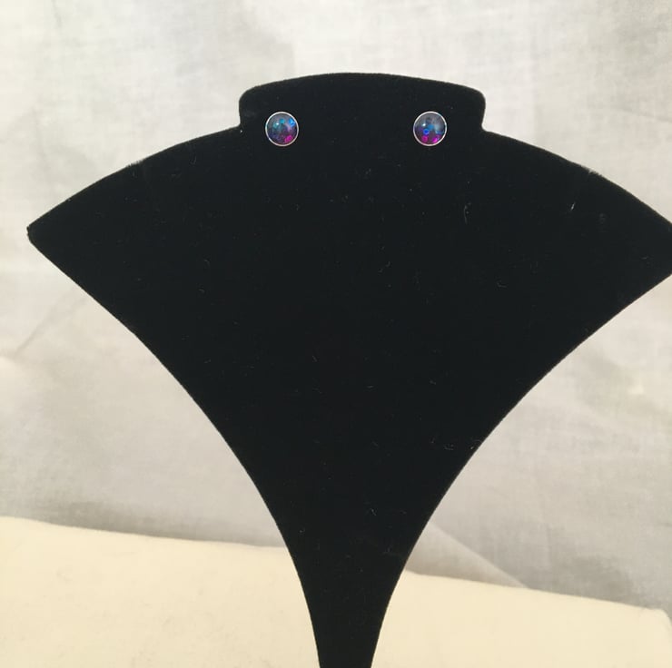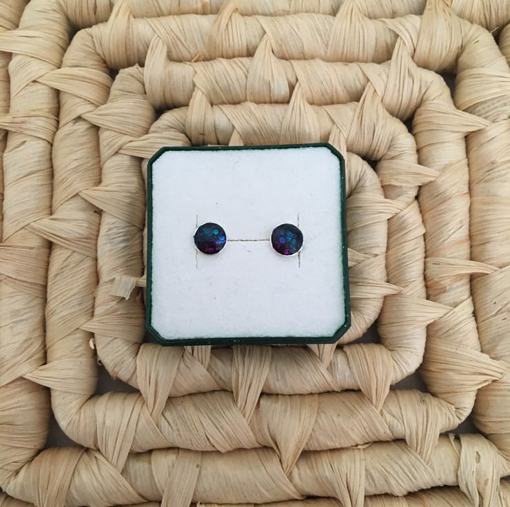 Pretty handcrafted tri-coloured centred stud earrings in a quality st.silver setting.