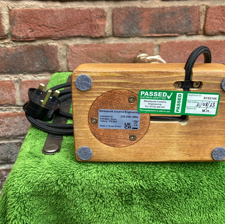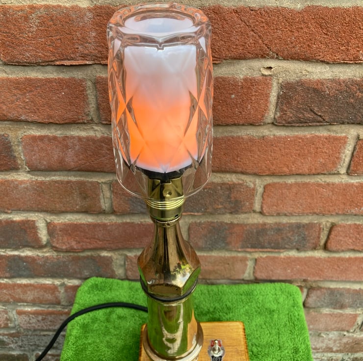 The lamp has a new brass ES lampholder securely fitted to the nozzle and comes complete with the 3-Watt LED flame effect bulb and a (drinking) glass cover to improve the effect. Placed on a shelf, desk or table this lamp will add a vintage steampunk element to almost any room.