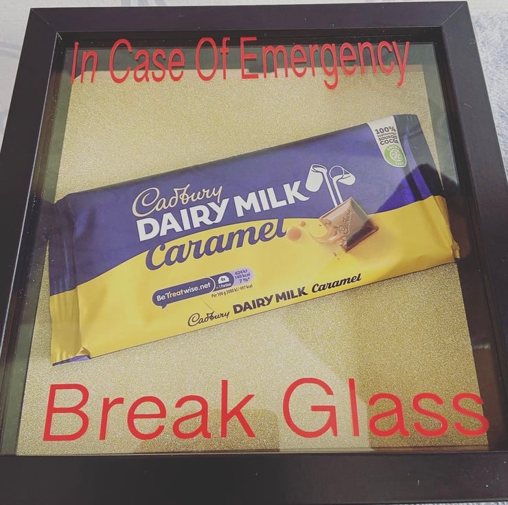 A white or black frame with a large chocolate bar inside. Please add the choice of chocolate and colour frame in the note section at check out.