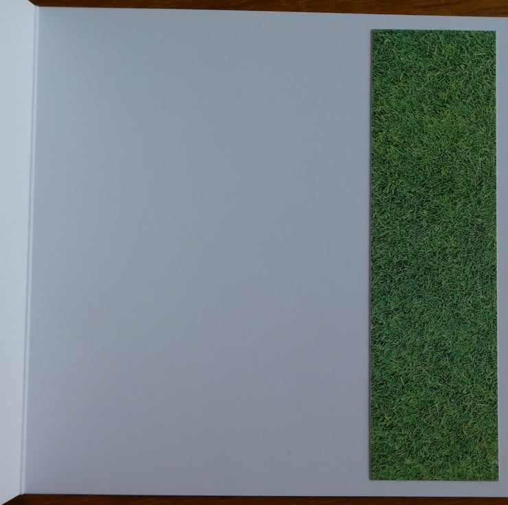 Printed images of a boy playing football, about to shoot against a dog playing as goalkeeper have been built up in layers with foam pads to give a complete 3d effect.
