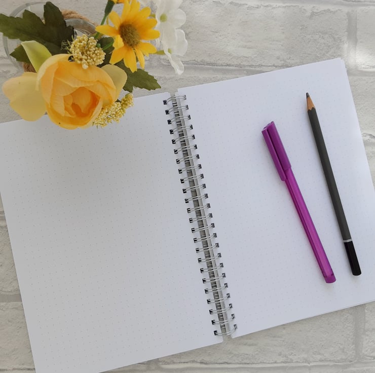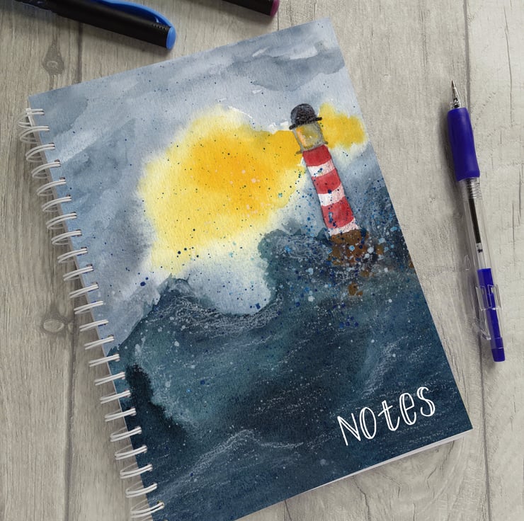 A lovely handmade notebook, available with lined, dotted grid or plain pages. The cover designs are taken from a handpainted original (one of my absolute favourites so far!!) and are printed onto durable photo paper with a textured satin finish. There is a thick board at the back, making these notebooks easy to lean on whilst your out and about. Pages are printed on 90gsm paper and there are 60 sheets, giving you 120 pages if you like using both sides.