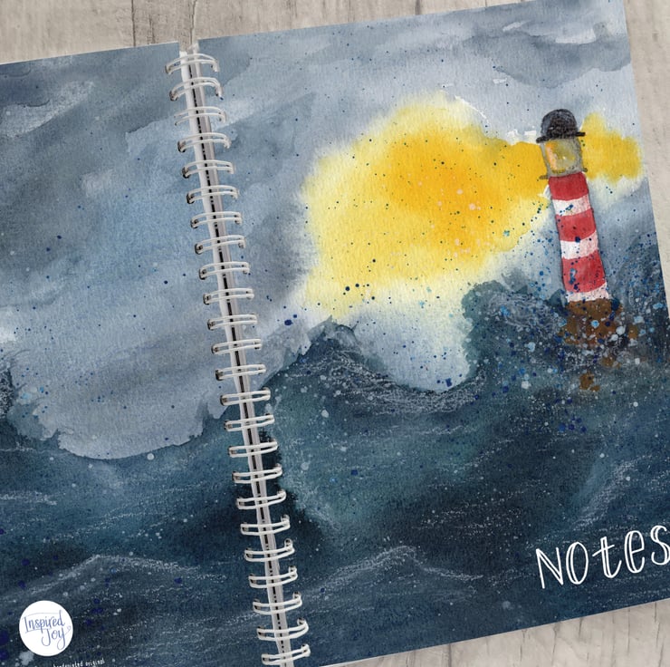 The story behind this painting is far to long to tell, and also very personal. The short version is that when we feel like we are lost at sea, look for the lighthouse, the light shining from God, to guide us home. There are many more paintings to go with this one, like a little series or collection, that all tell a different chapter. Most importantly, they tell of a great - not easy - but a great journey I've been on that had a very happy ending.