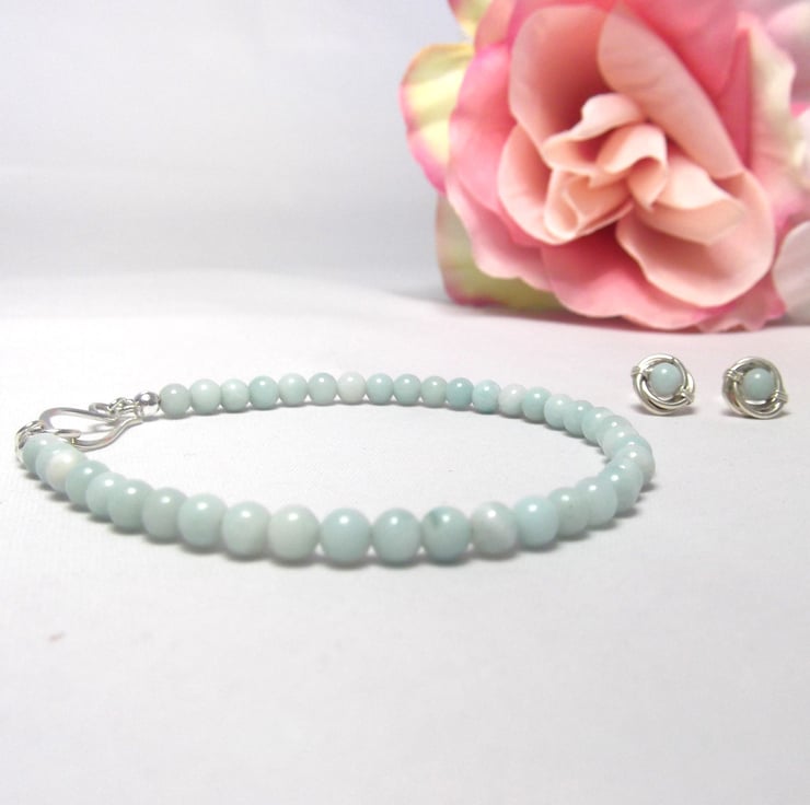 Complete the set with our Amazonite gemstone bracelet of small round beads with recycled silver clasp.