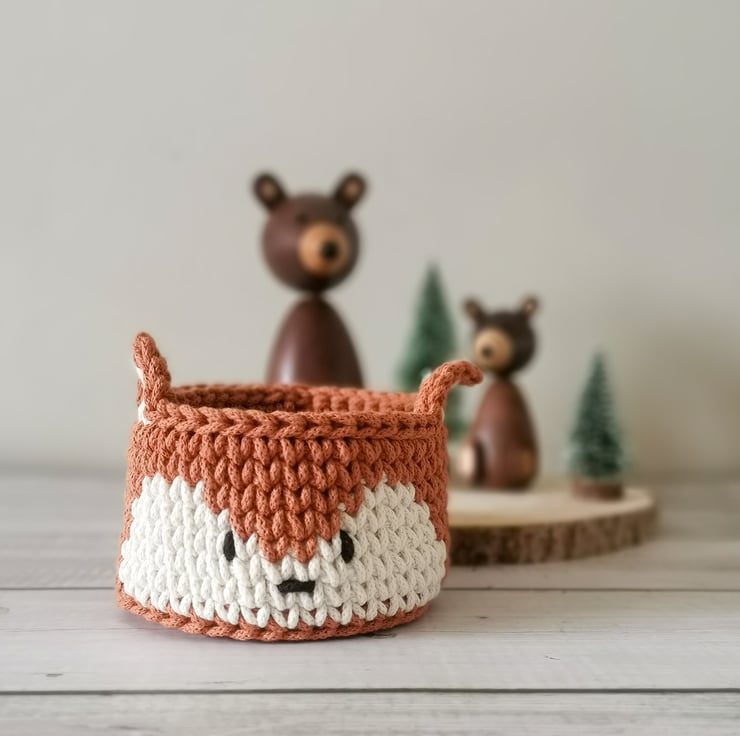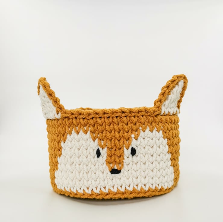 Looking for a unique and handmade addition to your nursery decor? Look no further than this adorable crochet fox basket! Made from recycled cotton, this custom made basket is perfect for storing toys, diapers, or even flannel. The perfect baby shower gift for any animal theme nursery!