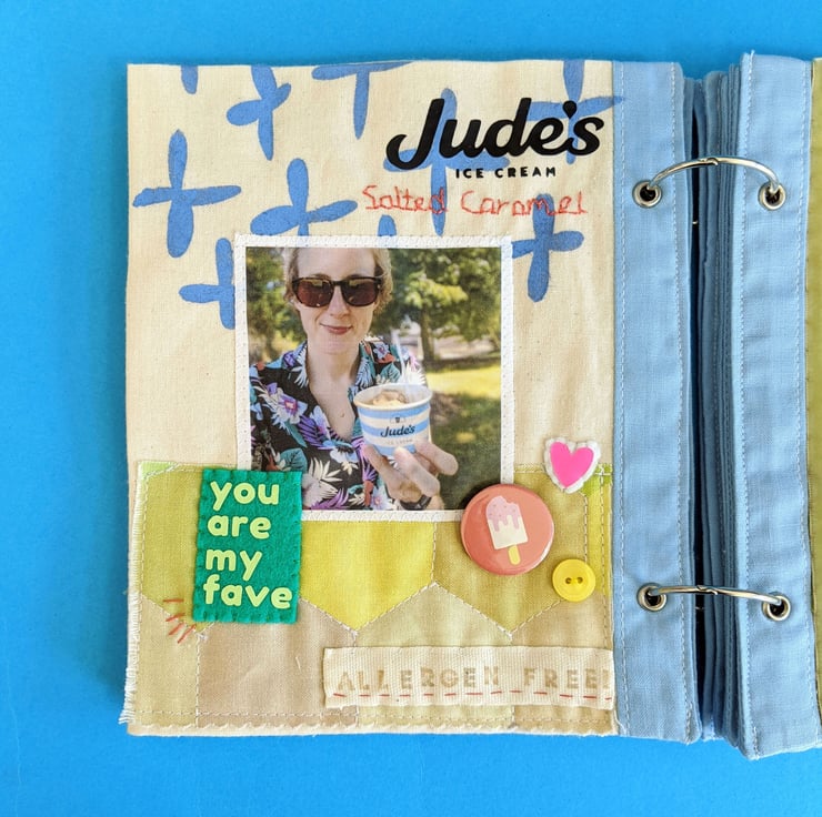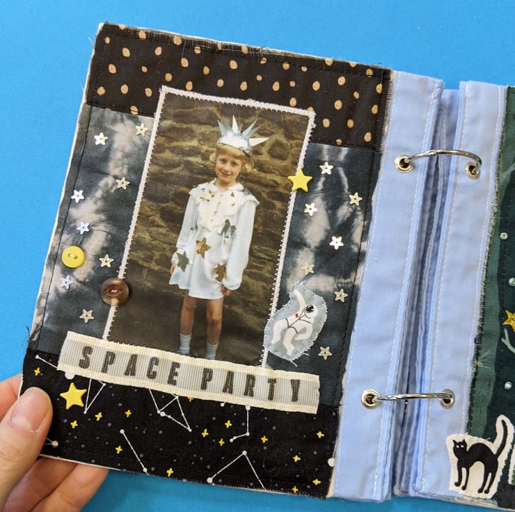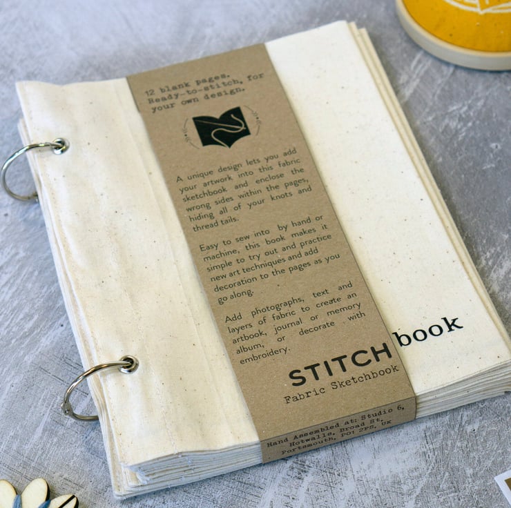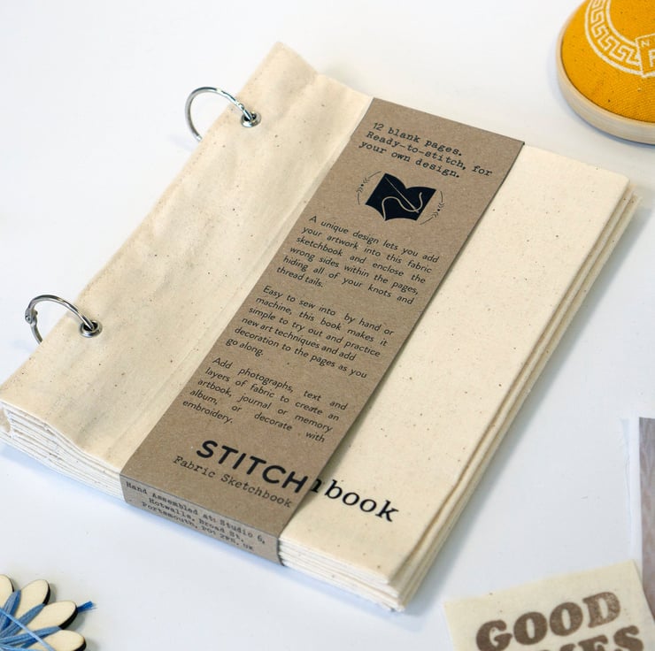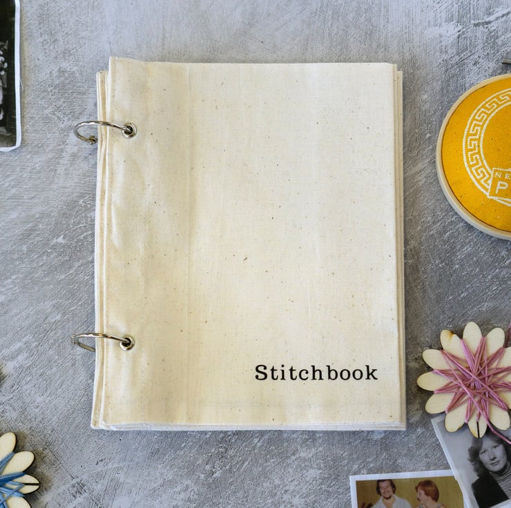 This 12-page cotton Stitchbook is perfect for use as a fabric photo album, art journal or to collect samples of embroidery.