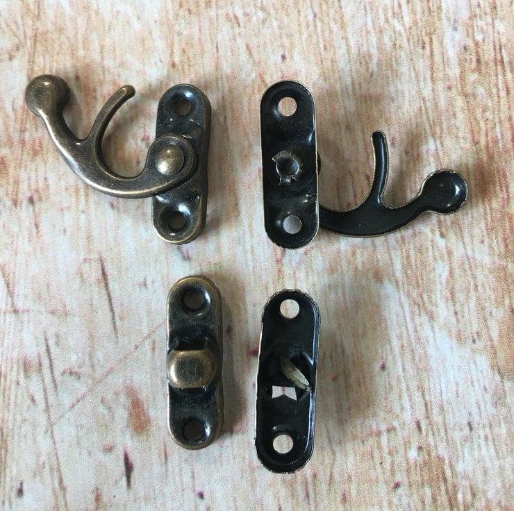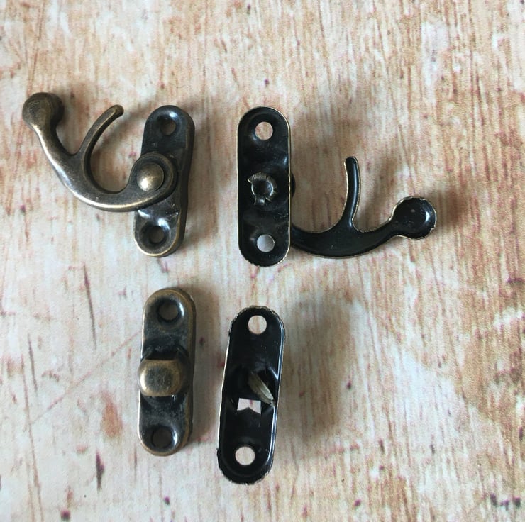 Pack of 4 latch hooks (8 pieces) made from pressed tinplate with a vintage bronze finish.