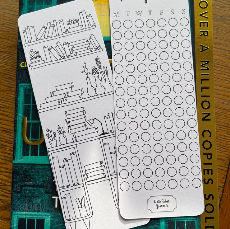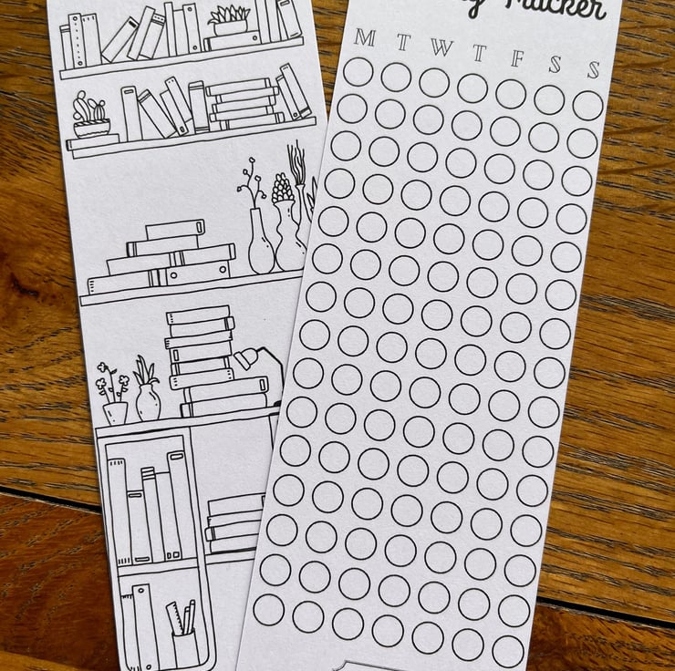 Our Reading Tracker bookmark is a unique and creative way to enhance your reading experience! With its double-sided coloring-in features, you can keep track of the days you read and create your own colourful book shelves.