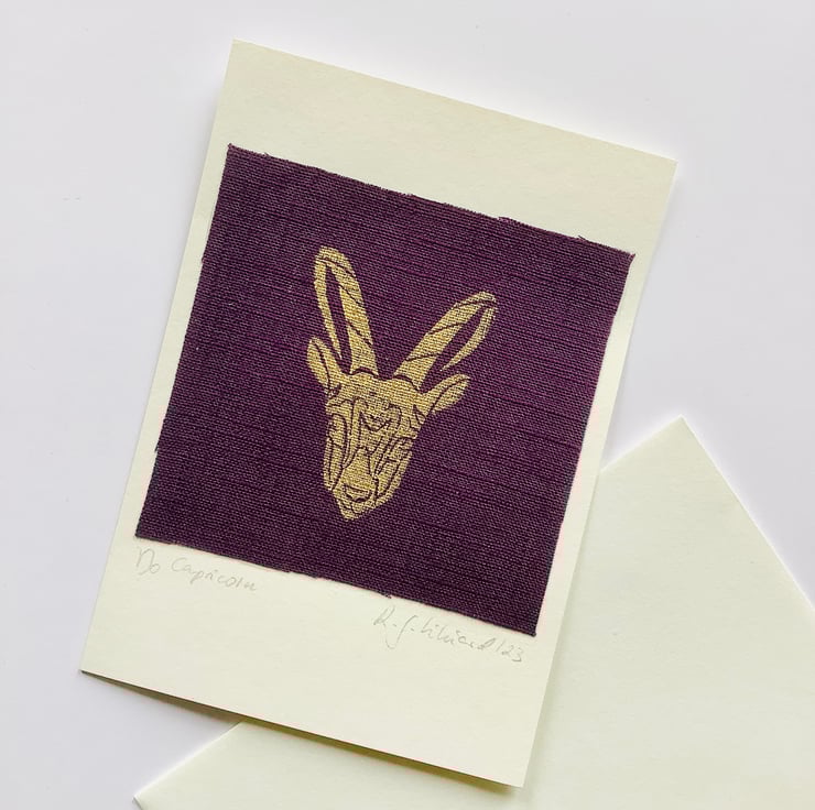 Each impression from the hand carved block is unique making the cards original pieces of art, signed by the artist.