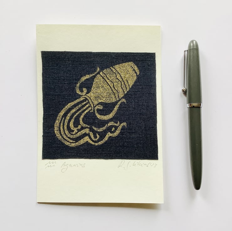 Each impression from the hand carved block is unique making the cards original pieces of art, signed by the artist.