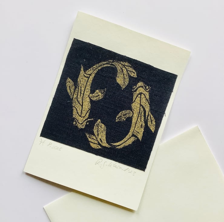 Each impression from the hand carved block is unique making the cards original pieces of art, signed by the artist.