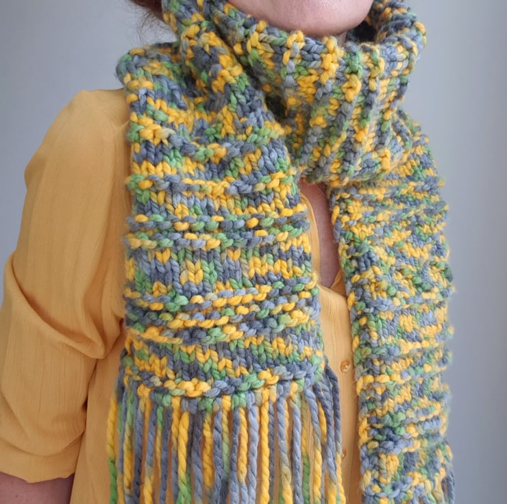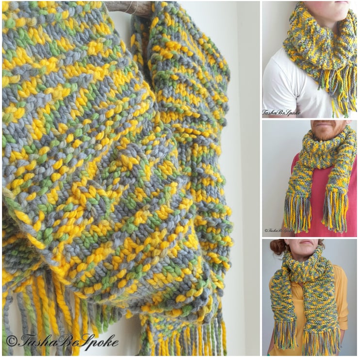 Hand knitted chunky acrylic scarf in bright and cheerful colour. Created for men but can be used also as unisex item. An excellent gift to keep your loved ones warm and stylish in cold season.