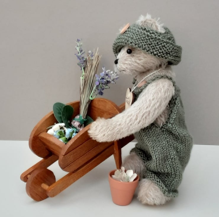 A unique little bear who would make a lovely gift for a gardening enthusiast or a unique addition to a bear collection.
