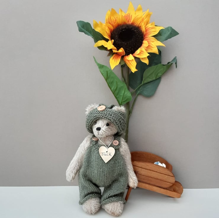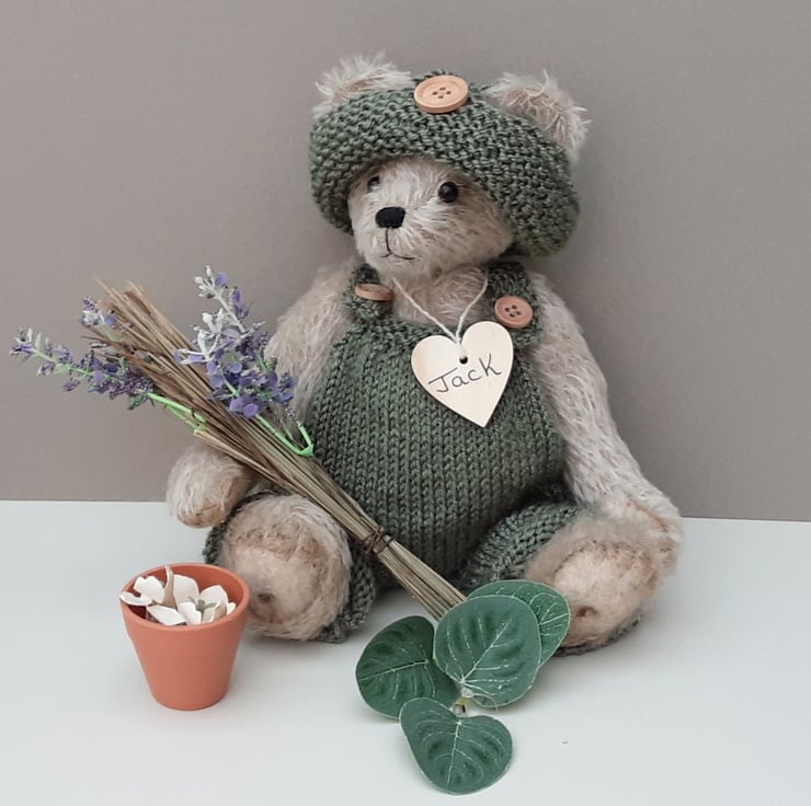 Jack wears his name on a wooden tag and Bearlescent is to the back of one ear on a polymer clay button. He will arrive with birth certificate and has been added to my bear register.