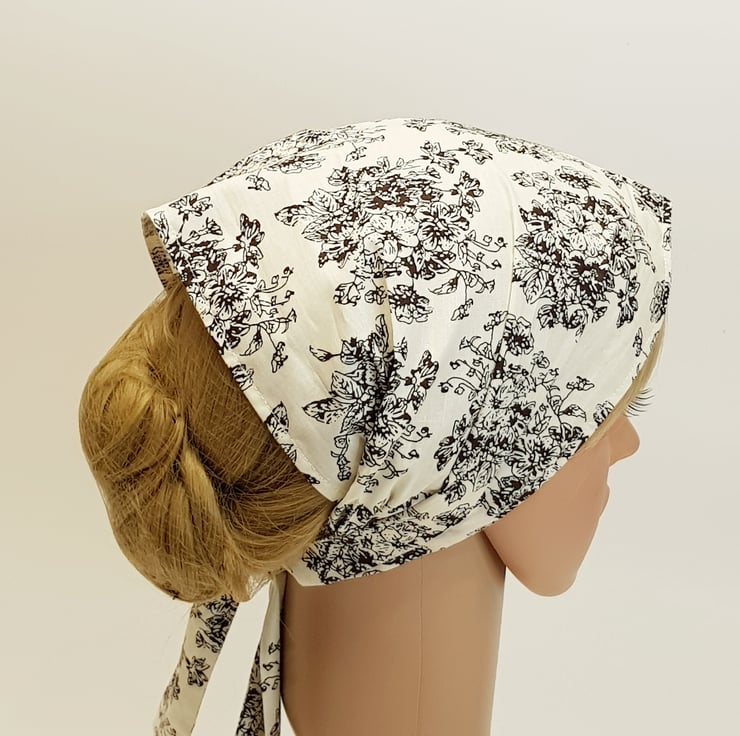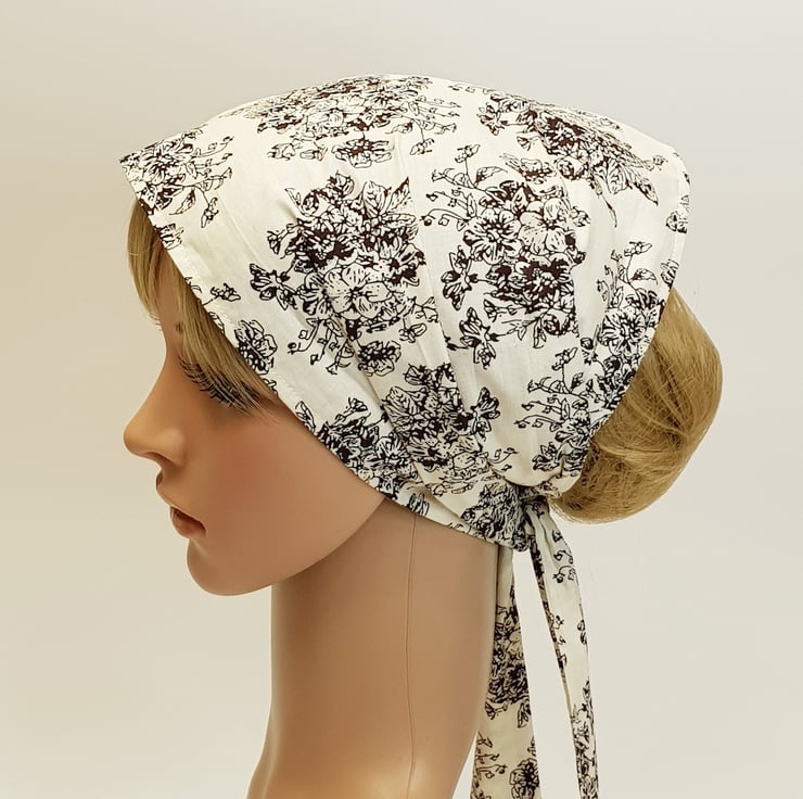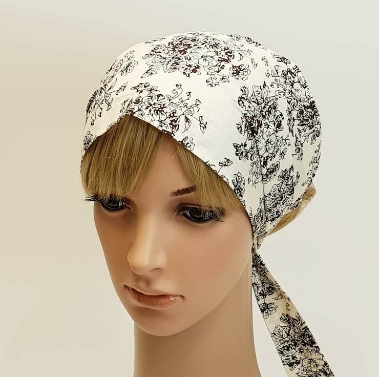 Women's floral cotton hair scarf , wide self tie hair wrap, summer head scarf.