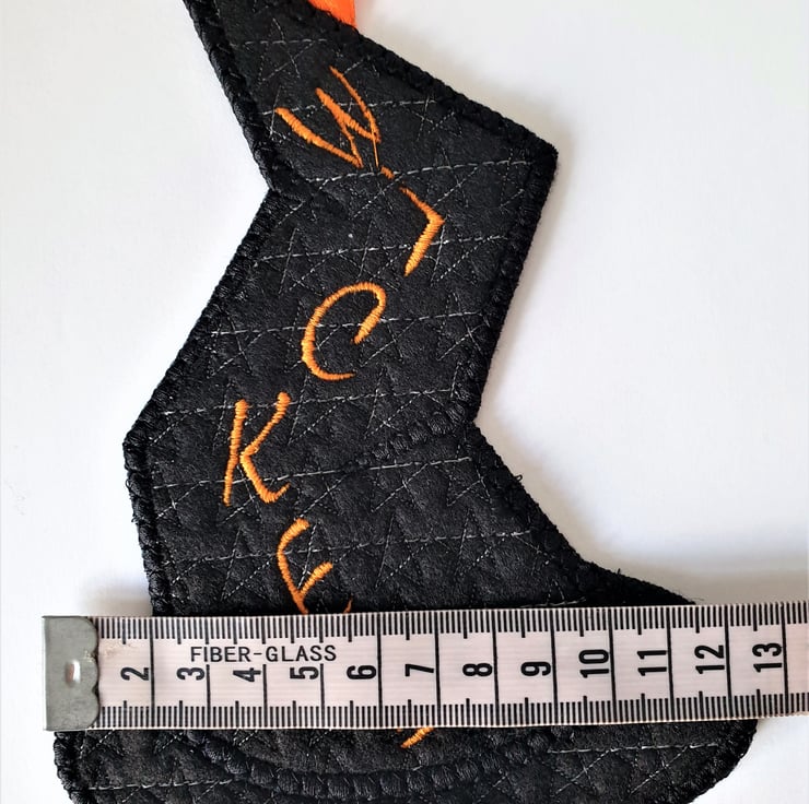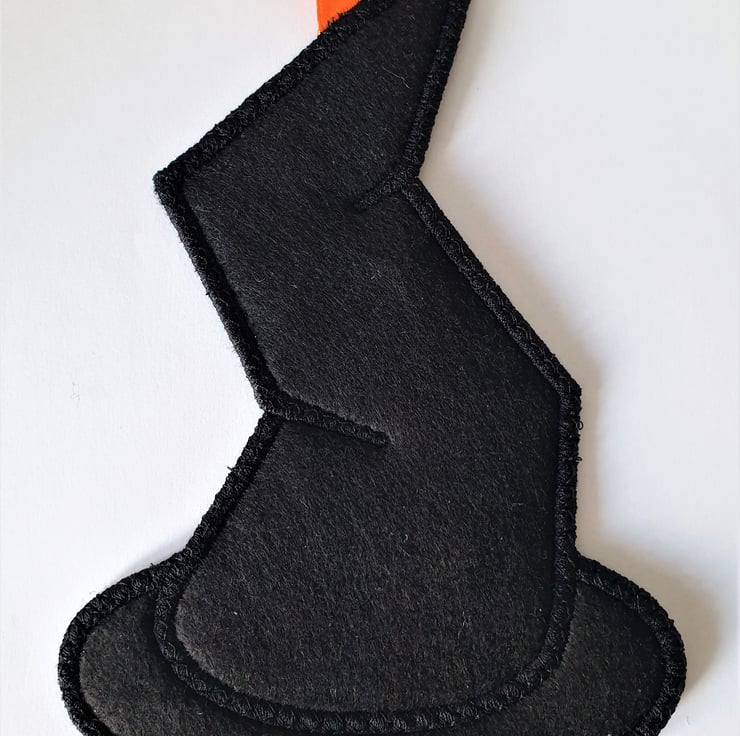 Made from quality wool blend felt with machine embroidered details, this witches hat comes complete with hanging ribbon.