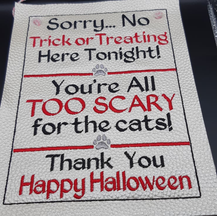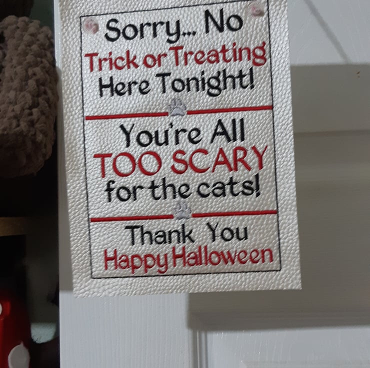 So rest easy this Halloween knowing no one will knock on your door with this NO TRICK OR TREATING SIGN.