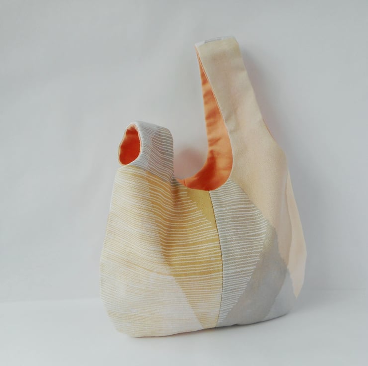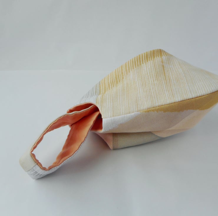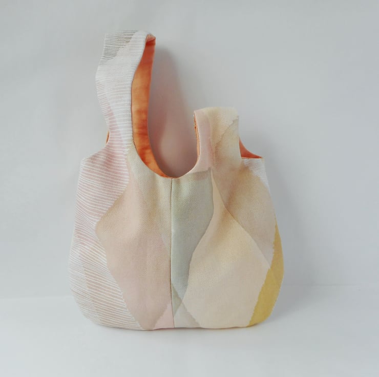 Made from cotton furnishing fabric offcuts in a graphic print in the most delicious soft pastel shades. Lined in peach cotton.