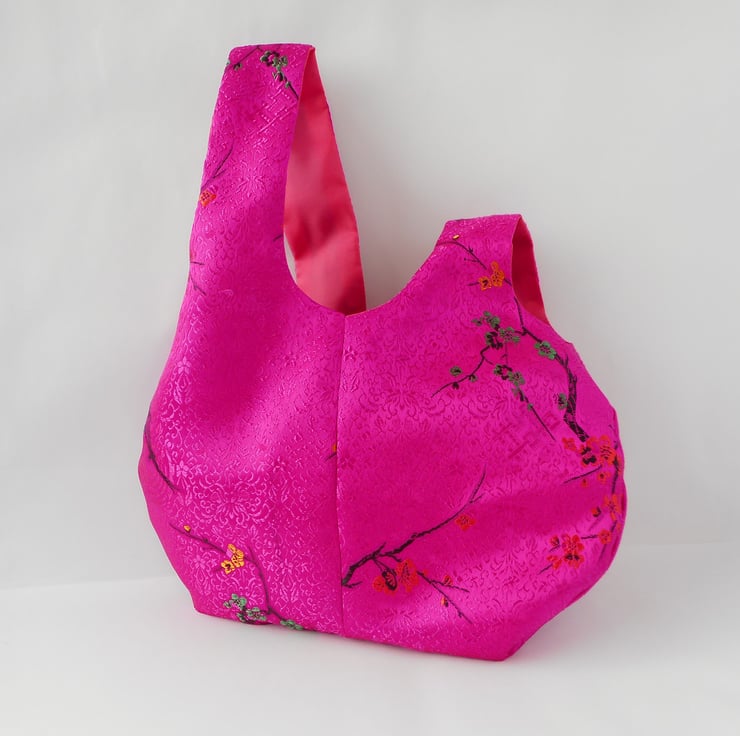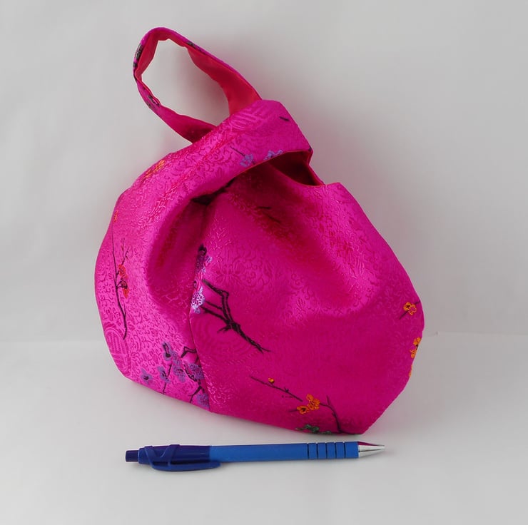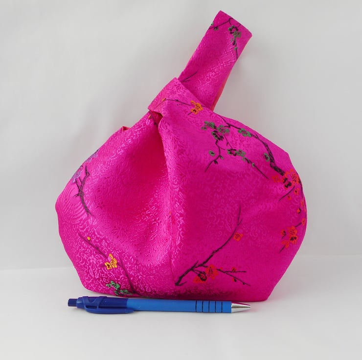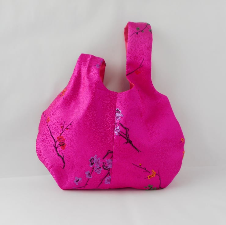 This japanese knot bag is made from a gorgeous satin brocade with a cherry blossom design in hot pink. This is my very last piece of this fabric, so unless I stumble across another few metres, this is the last of these bags.