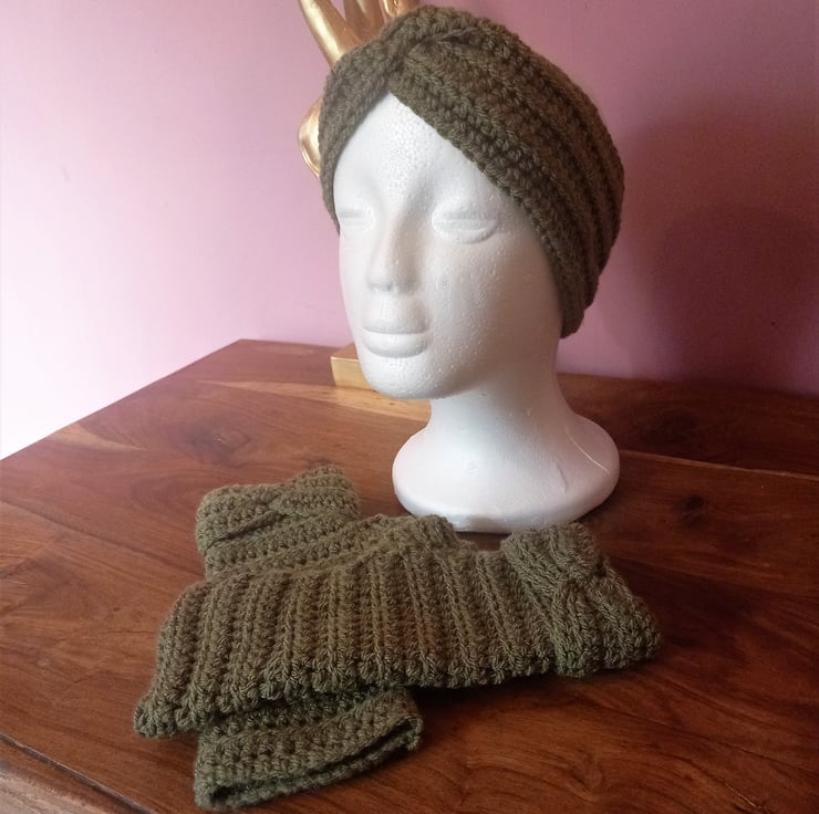 To complete the ensemble, we've included a matching headband, handcrafted with the same light ribbed stitch and featuring a coordinating twist detail at the front. This set is the ultimate combination of warmth, comfort, and style. Elevate your winter wardrobe and make a statement with our exquisite handmade set.