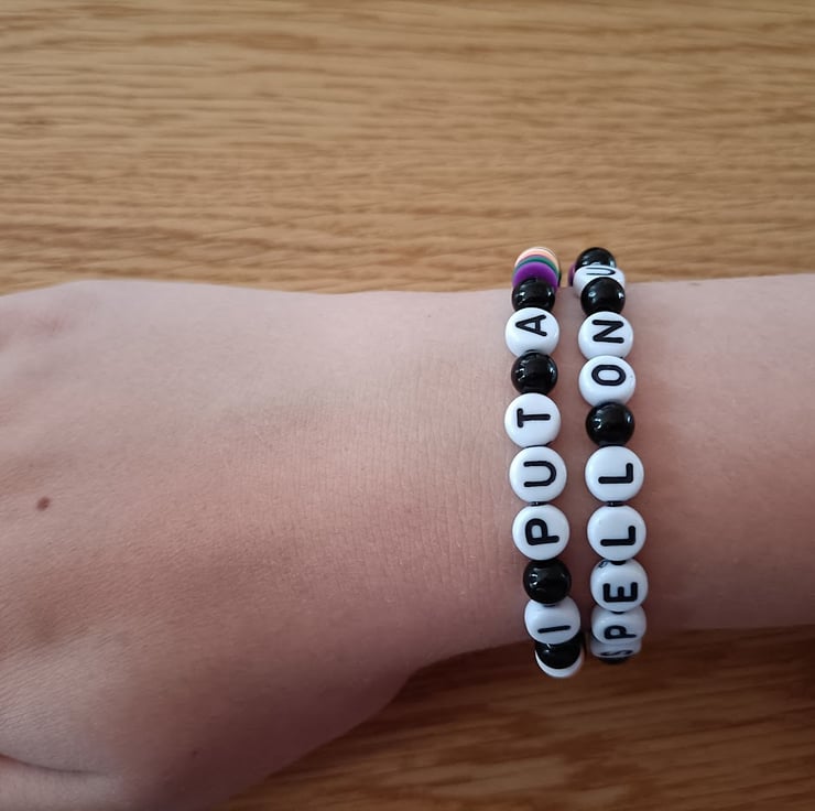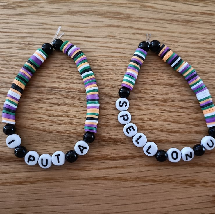 Spooky coloured beads, with I PUT A SPELL ON U.