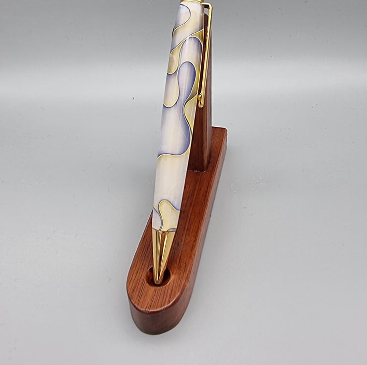This European style pen is created from “yellow/white marble effect acrylic” and Has a lovely grain which is highlighted by the gold features.