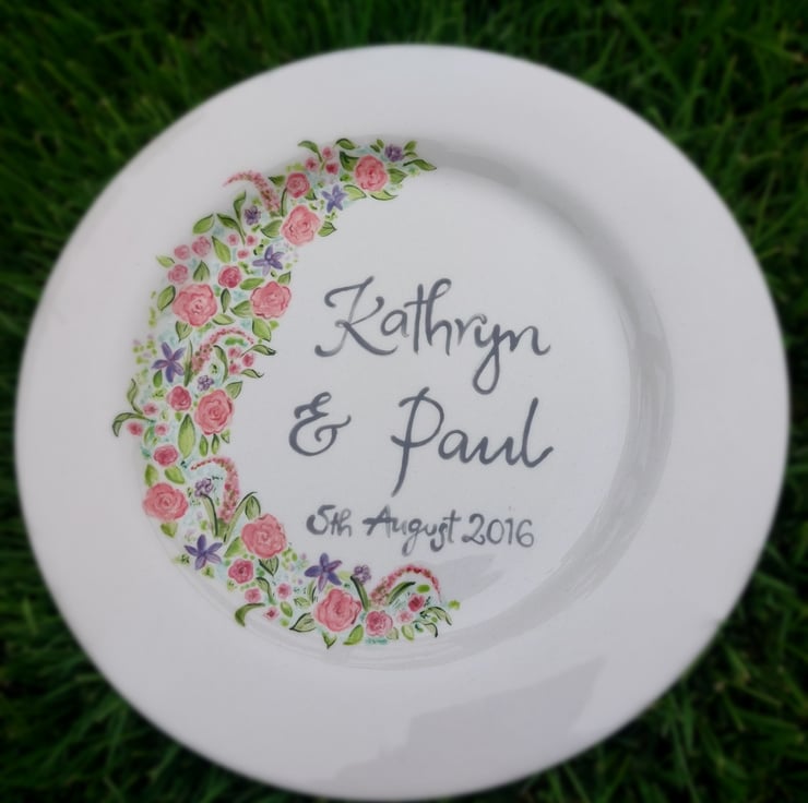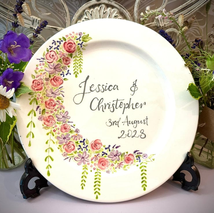 Looking for a unique gift for a special couple on their wedding or anniversary? This beautifully crafted plate can be customised to feature the flowers and colours that commemorate their special day!