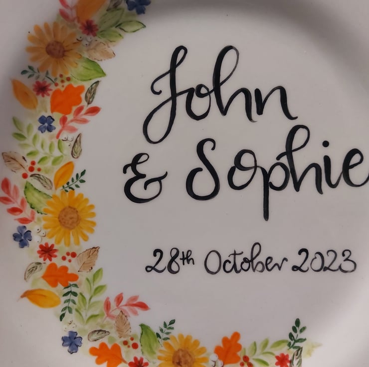 - Customisation: Each plate is hand-painted and hand-lettered by me—no stencils or transfers. You can choose the lettering colour (dark grey or black) and select the flowers and colours. I’ll reach out via email to discuss your preferences after your order.