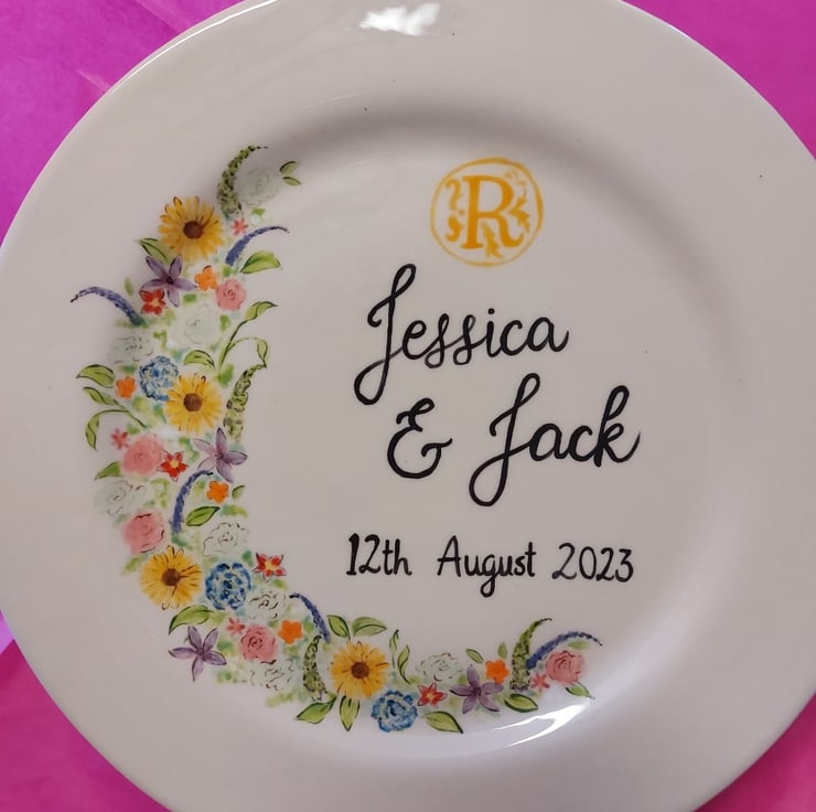 I wanted to create a wedding gift that was more personal to the receiver. This plate captures the colours and flowers at the wedding, and is a piece that helps them to remember a wonderful day.