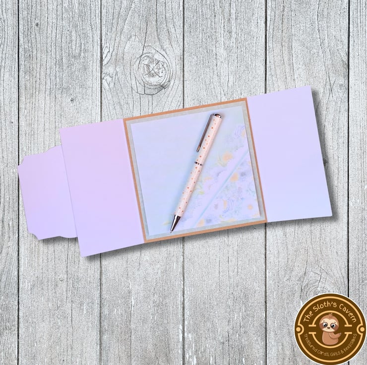 The card is handcrafted by myself, using the Hunkydory "Wildlife Blossoms Luxury Card Toppers Collection". It is a Centre Fold (gate fold) card, with the 2 front panels opening either side.