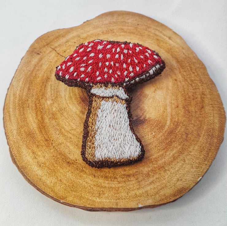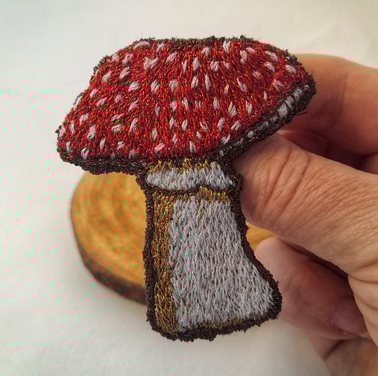 This lovely Forest mushroom was delicately embroidered using DMC light effect metallic embroidery thread.
