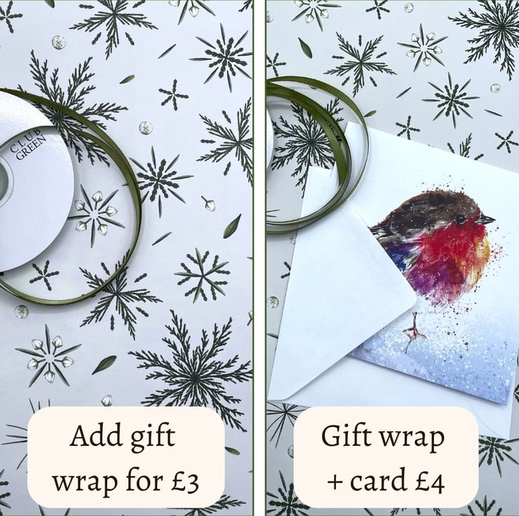 Gift options are available. If you have added a card and gift wrap you can include a message to be written in the card, if you would like one. Messages left without purchase of the card option will be written on the receipt.
