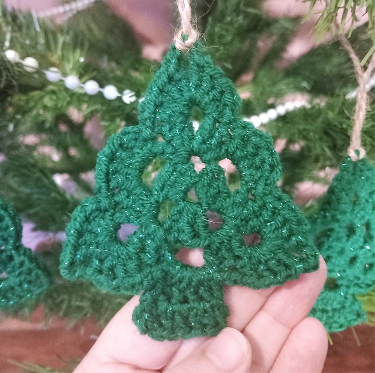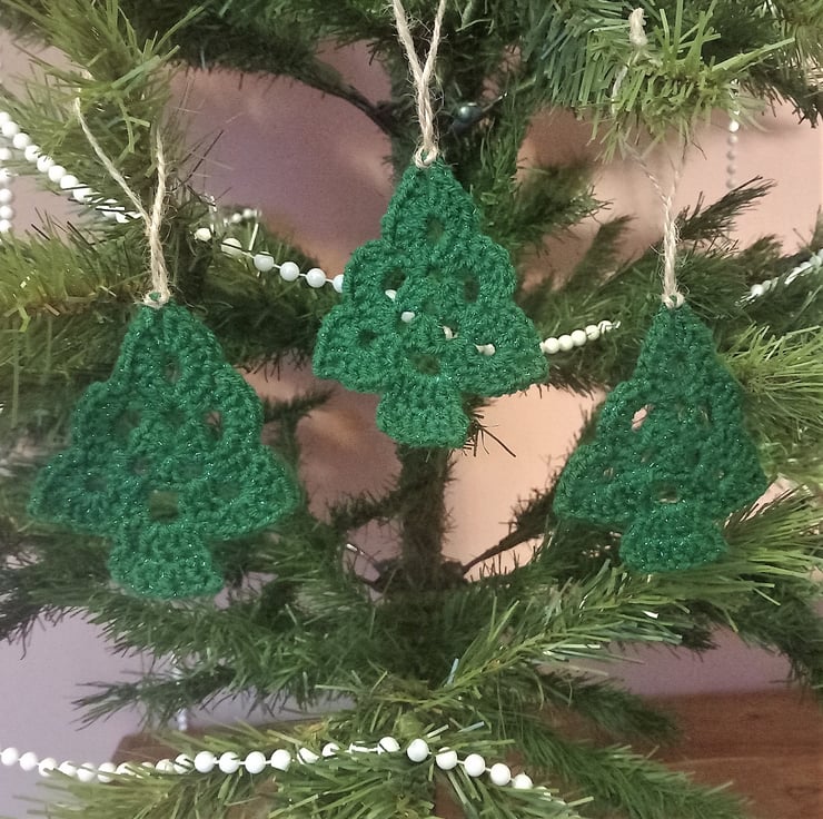 Get ready to sprinkle some festive cheer into your home with this set of 3 handmade Christmas Trees! Crafted with love, these adorable trees are crocheted using acrylic yarn, featuring a festive green metallic thread for that extra Christmas sparkle.
