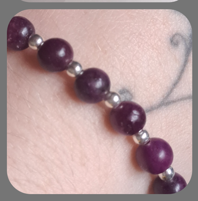 The Lepidolites are a beautiful plummy colour and each one is unique. It's quite a soft stone and it's recommended to remove it before going into water.