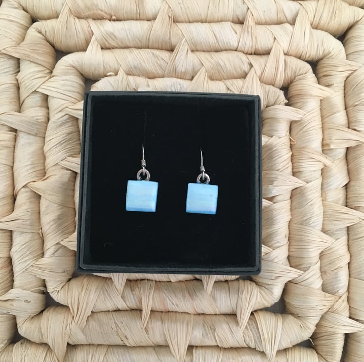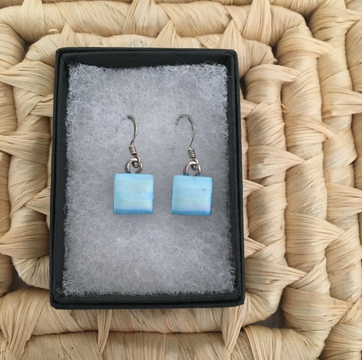 These unique handmade earrings are created using a polymer clay base. The basic shape is created and specialist powders are then added to enhance the delicate pastel colour tones before firing giving the finished earring a soft satin sheen.
