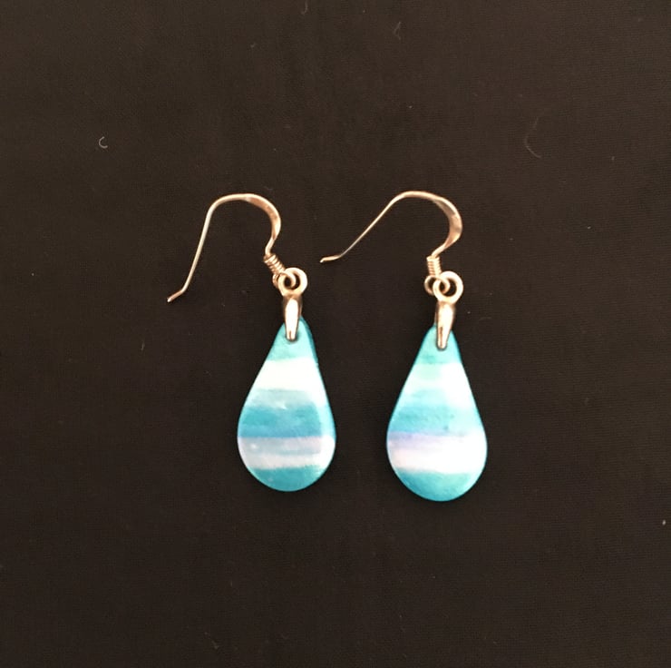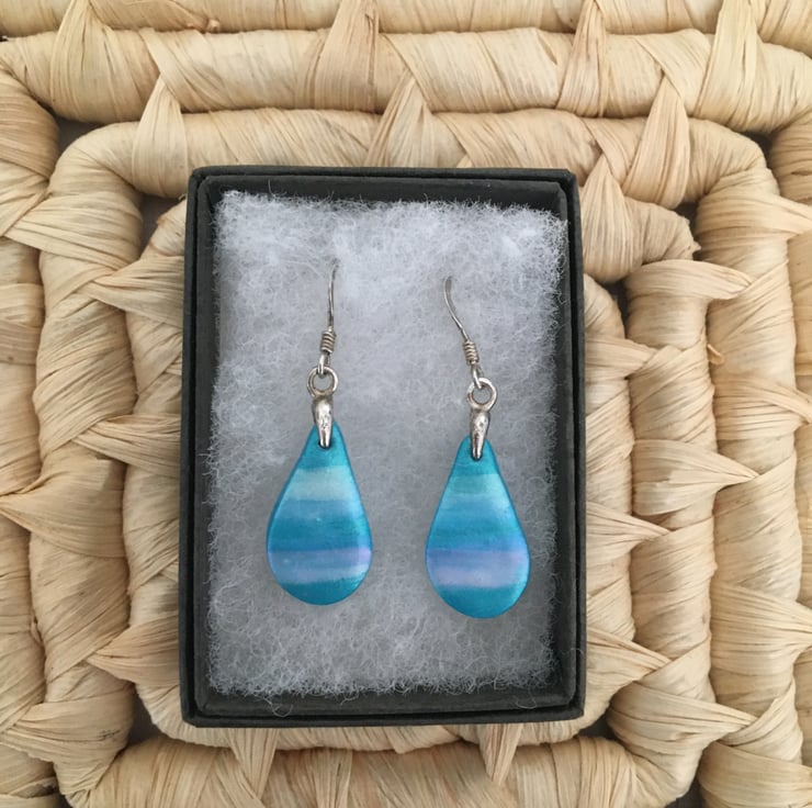 These unique handmade earrings are created using a polymer clay base. The basic shape is created and the specialist powders are then added to enhance the delicate pastel colour tones before firing to produce a lovely soft satin sheen. Please note that as these are a one-off hand finished design there can be tiny imperfections, this is a normal part of a handmade created design.