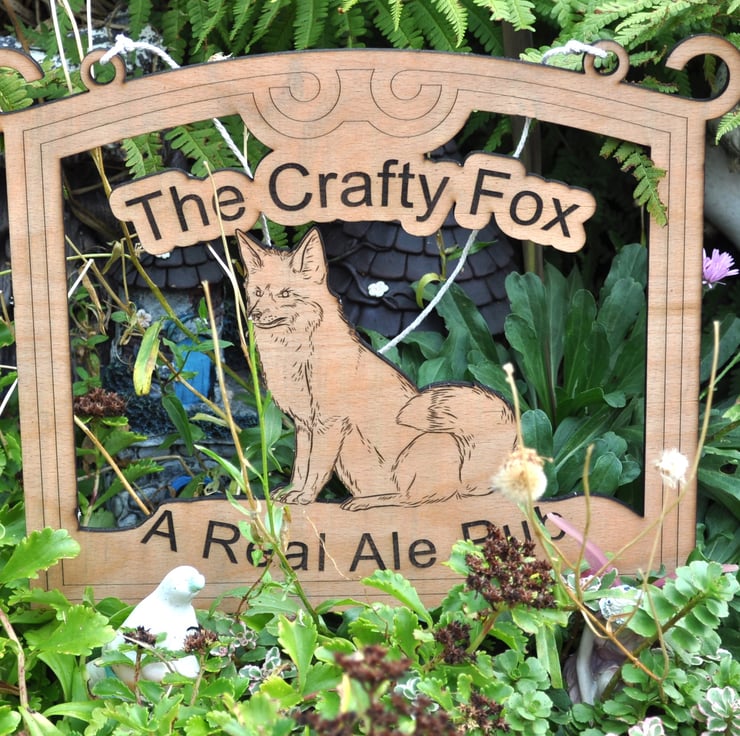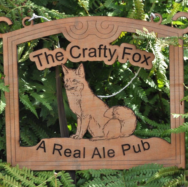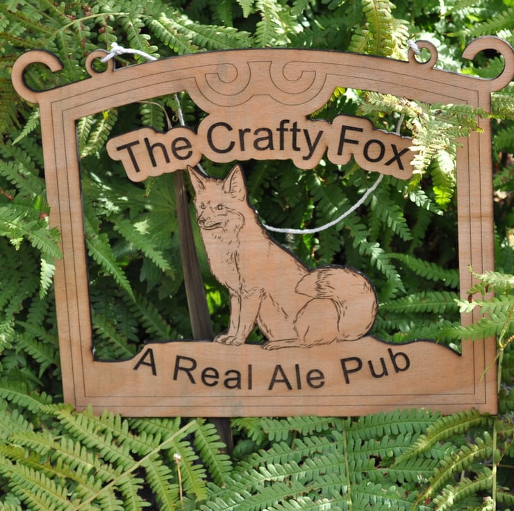 Fox Pub Sign Decorative Wall Art laser cut from 5.5mm plywood sealed the size is 330mm wide x 260mm high x 5.5mm thick. this item is made to order.